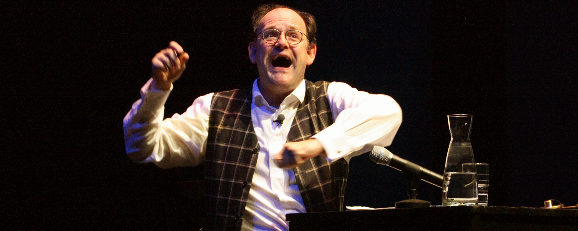 Vorhang auf für den ganz normalen Wahnsinn! In ihrem neuen Programm ‚Ochsenmaulsalat‘ präsentieren Susanne Hasenstab und Emil Emaille wieder einmal die haarsträubende Komik, die unserem alltäglichen Gebabbel innewohnt. Sie erkunden kommunikative Sackgassen und verwandeln Gespräche zwischen Ehepartnern, Bekannten und Fremden im Café, am Frühstückstisch oder an der Bushaltestelle in absurd-komische Minidramen. In unserem Balkonfoyer ist außerdem die Ausstellung ‚Mer sacht net mer seecht, mer seeech, mer sacht‘ zu sehen…mit vom Aussterben bedrohten hessischen Wörtern. Schaut mal auf www.volksbuehne.net